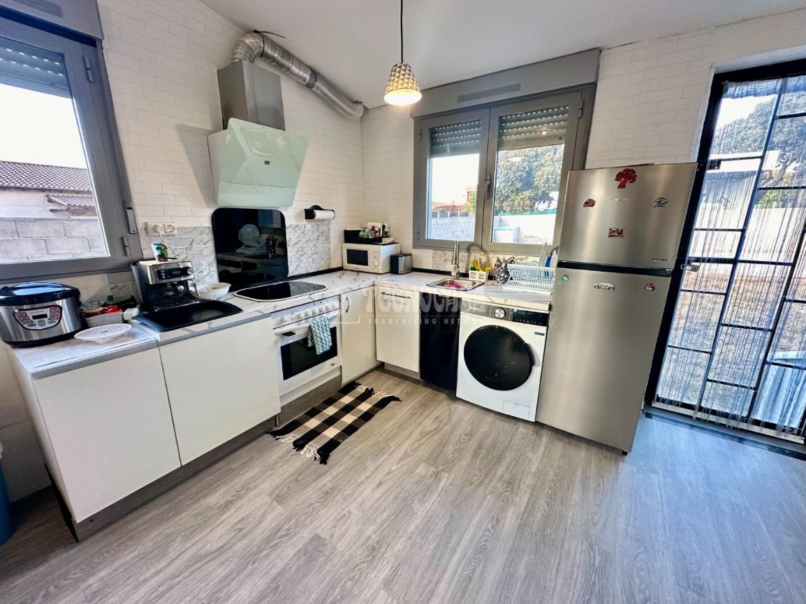 La vivienda esta construida en una sola planta, distribuida en un amplio salón comedor con cocina americana, 2 amplios dormitorios y baño completo. (Posibilidad de hacer otro baño en el dormitorio principal).