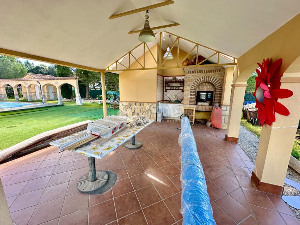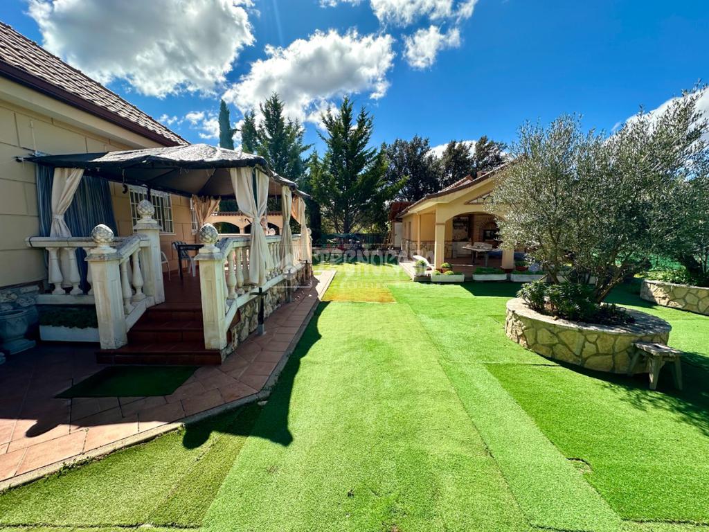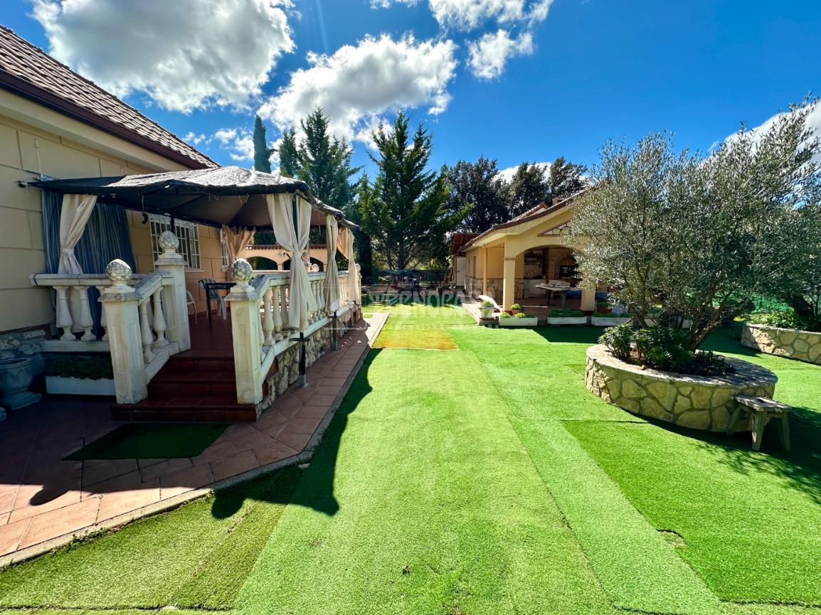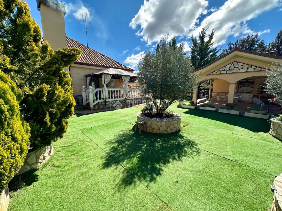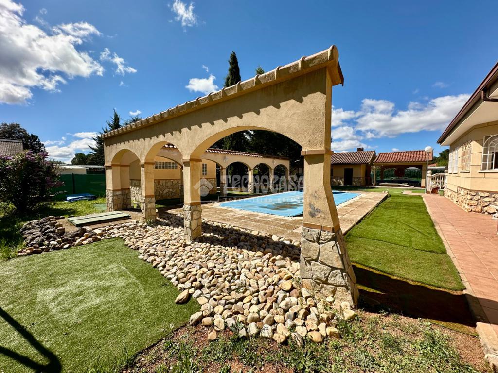 Destaca por tener una gran parcela de 2.608 m2 en la que nos encontramos con una espectacular piscina de 9x3.5 metros rodeada de unos bonitos arcos de diseño, zona de jardin con varios arboles, flores y huerto, un fantastico porche con barbacoa donde disfrutar de momentos unicos, garaje muy amplio, 2 almacenes y aseo.
