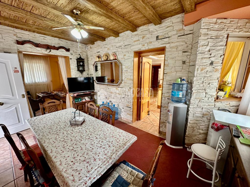 La vivienda se divide en 2 plantas, la planta baja se distribuye en un bonito hall, salón cocmedor con chimenea de leña, cocina exclusiva con isla central con conedor con salida a un bonito porche con cenador, 2 espaciosos dormitorios y un baño completo.