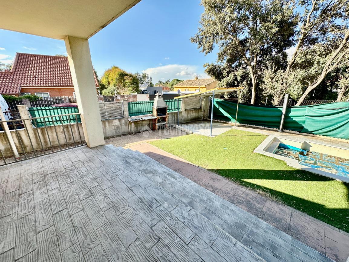 La vivienda destaca por su gran parcela de 543 m2 solada de hormigon impreso que bordea toda la vivienda, con puerta para guardar varios vehículos zona de jardín con barbacoa y piscina.