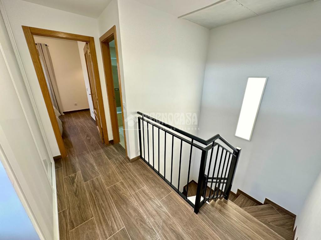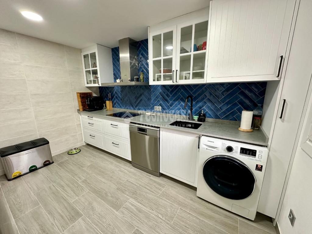 En la planta baja nos encontramos con hall, aseo, amplia cocina amueblada con despensa y gran salón de doble ambiente muy luminoso con salida al jardin.