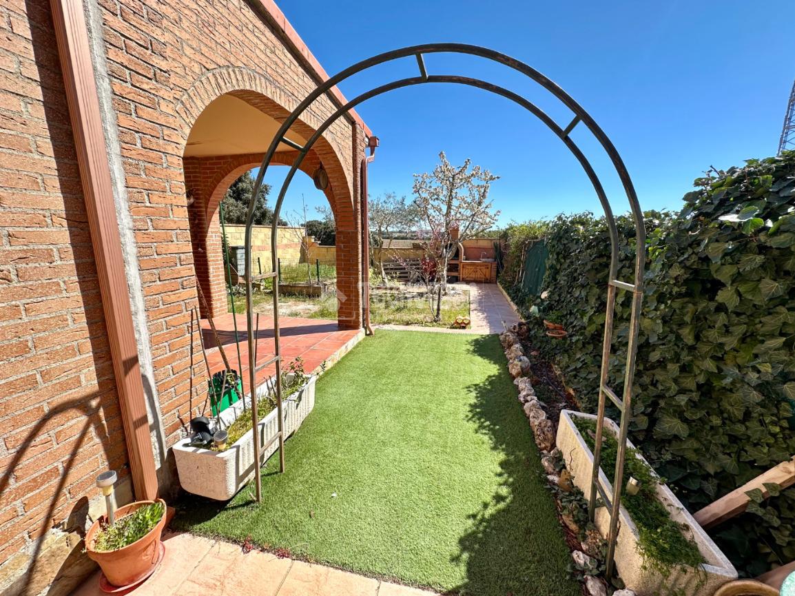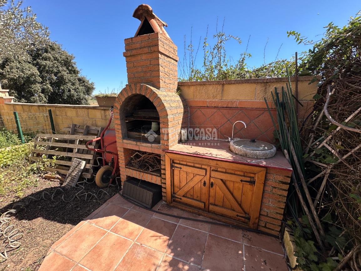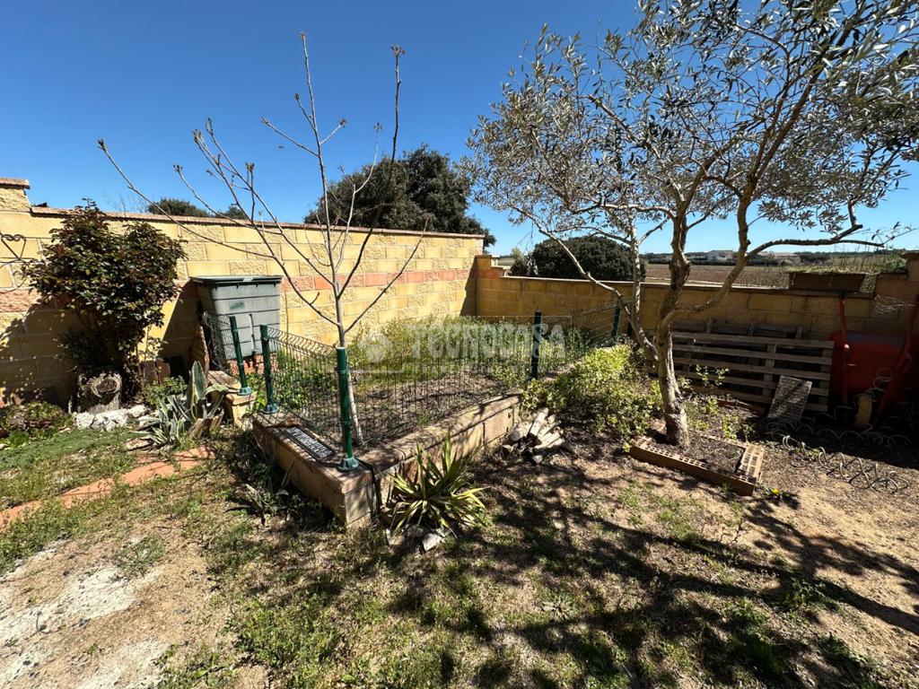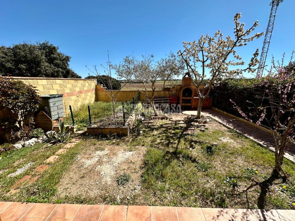 Cuenta con una gran parcela de 254 m2 que bordea toda la vivienda, en la que nos encontramos, zona para poder aparcar un vehiculo, un bonito porche, jardín, una fantastica barbacoa de obra y zona de huerto.