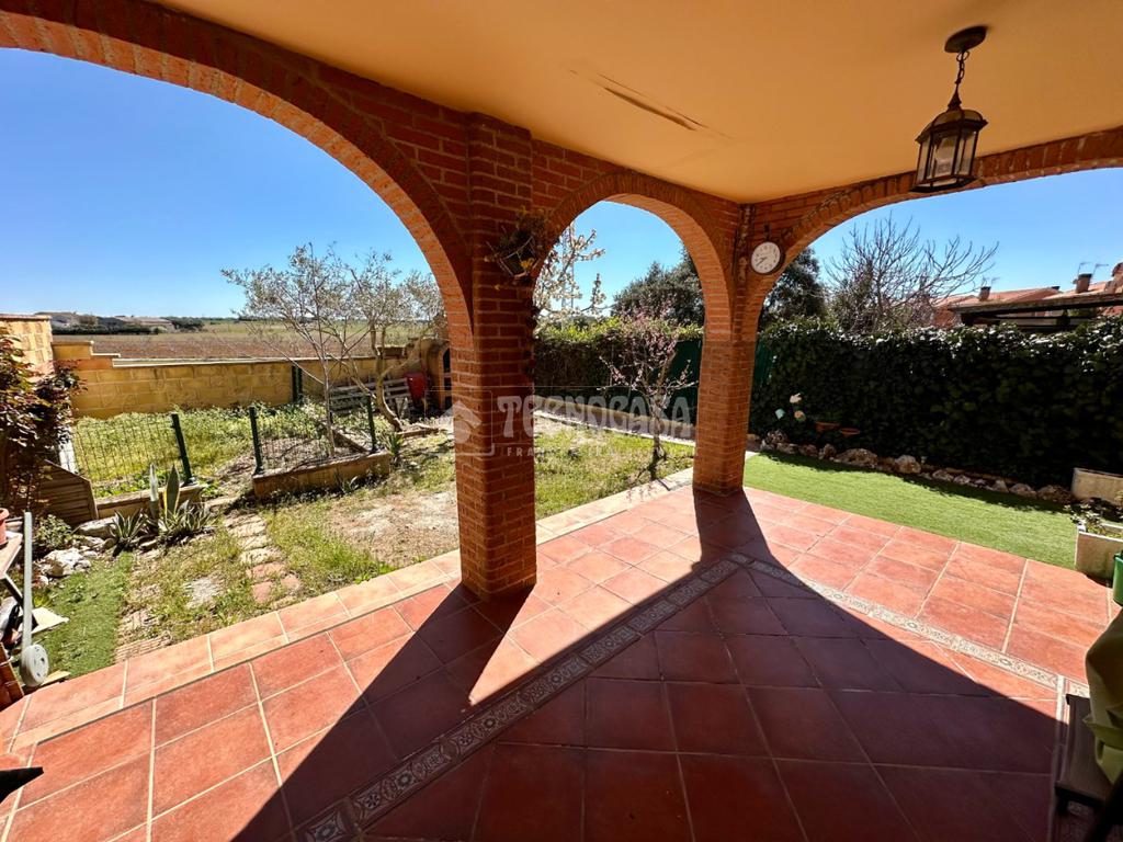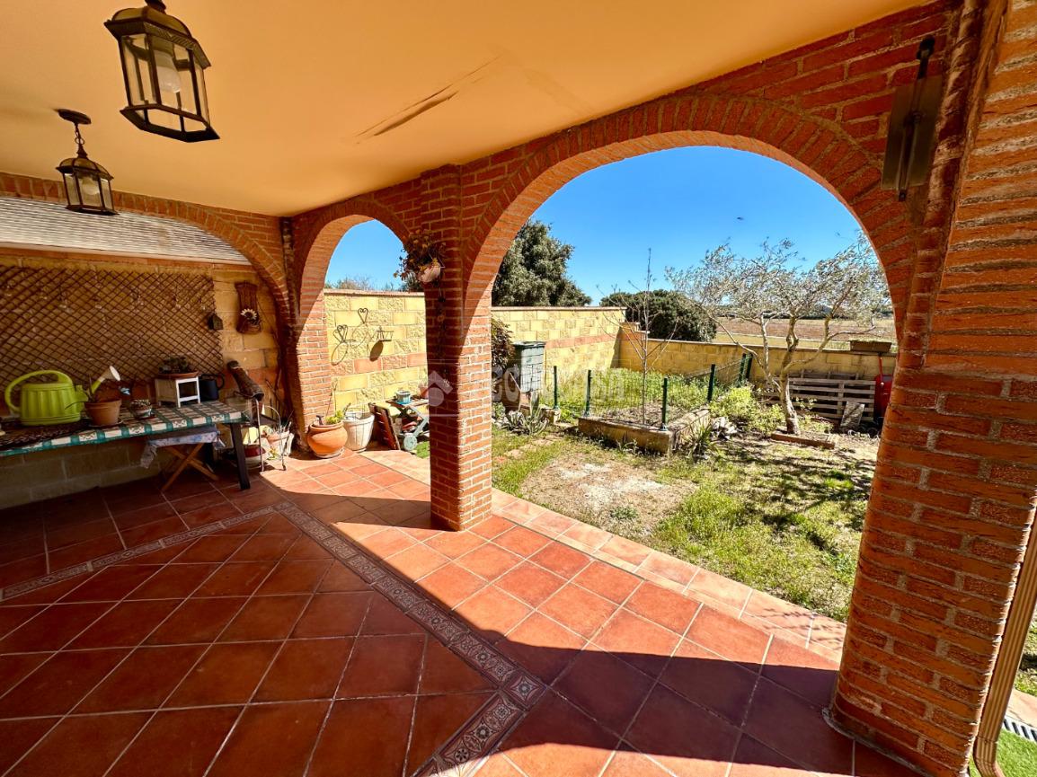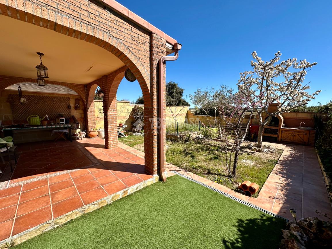 Cuenta con una gran parcela de 254 m2 que bordea toda la vivienda, en la que nos encontramos, zona para poder aparcar un vehiculo, un bonito porche, jardín, una fantastica barbacoa de obra y zona de huerto.