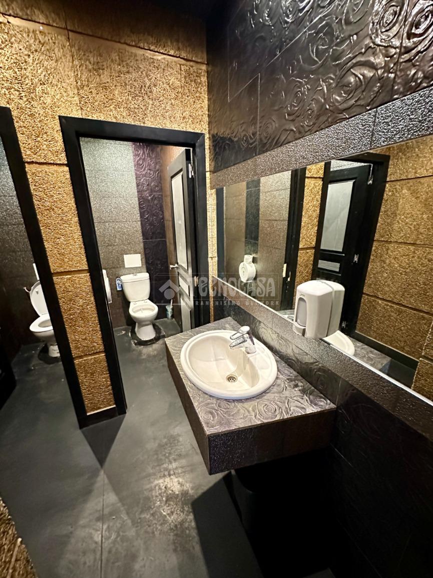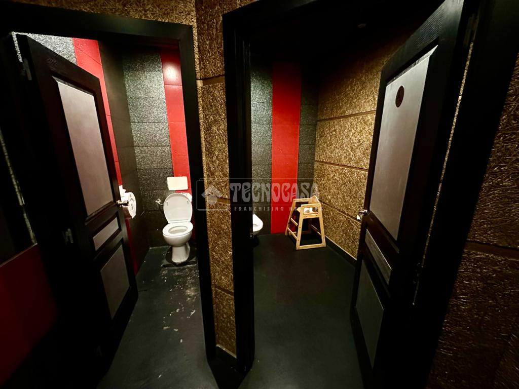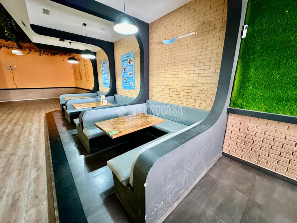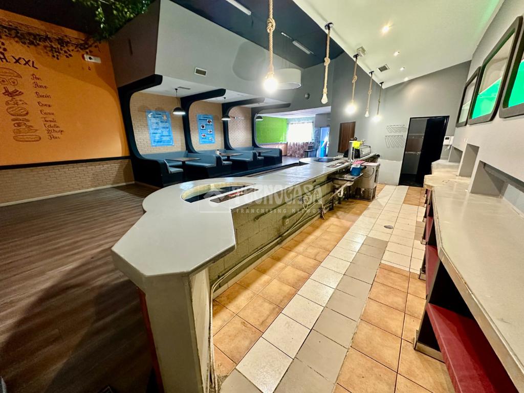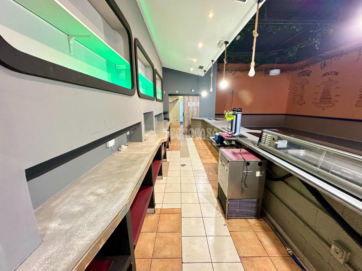 Dispone de 2 baños, amplio salón comedor con varios bancos con mesas, zona de barra, amplia cocina y varios almacenes (baño para el personal).