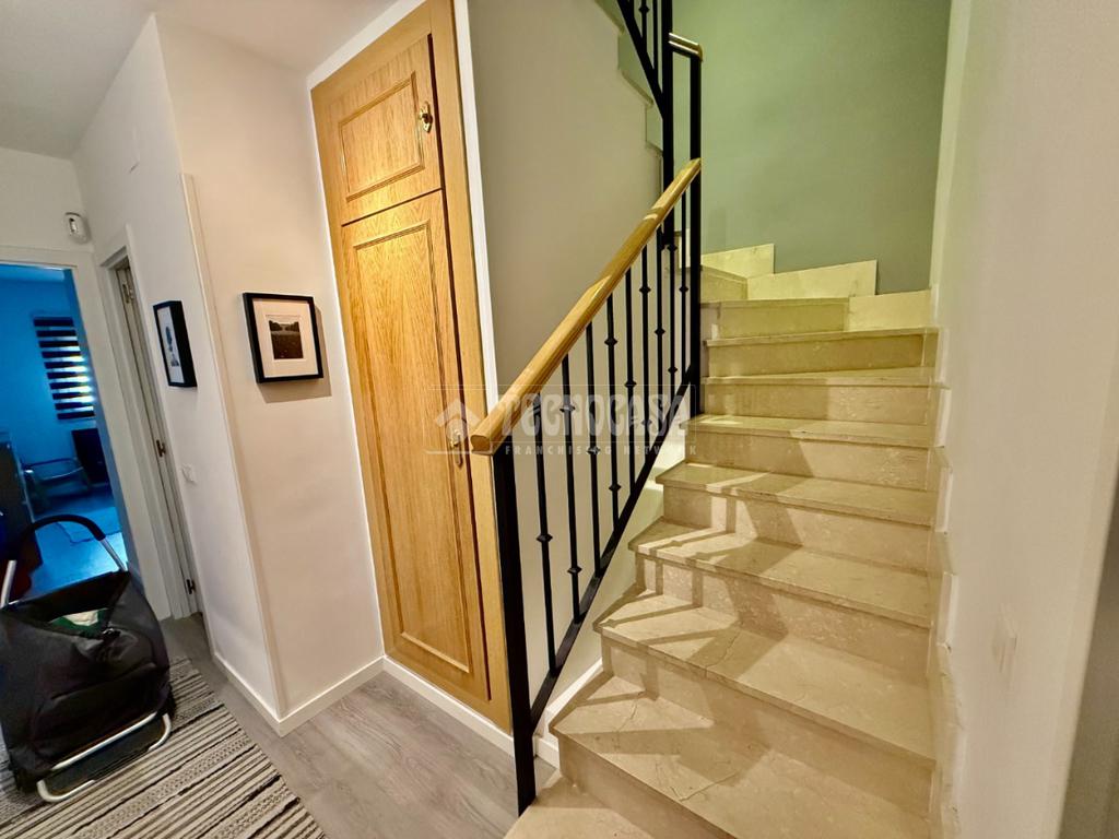En la primera planta, se encuentra el salón muy luminoso con acceso a un altillo acondicionado como despacho, terraza, aseo y amplia cocina amueblada con salida a otra estupenda terraza.