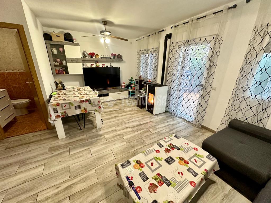 En la planta baja nos encontamos con un porche delantero, cocina amueblada, amplio salón comedor con estufa de pellet, aseo y garaje independiente.